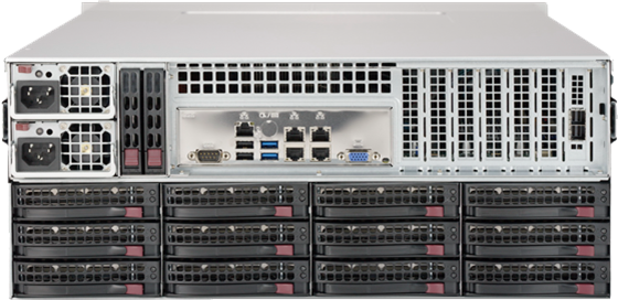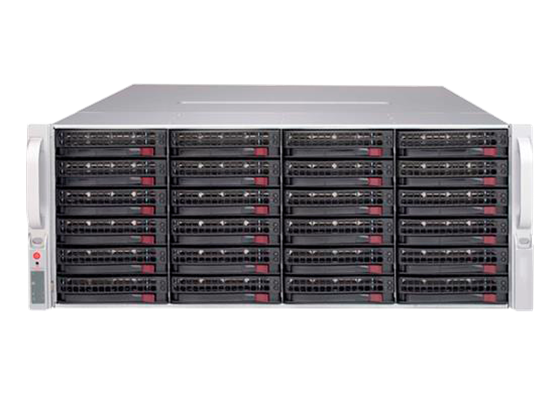 Up to 288 TB of storage per server using continuous duty enterprise-class drives. RAID5 is standard on these servers and RAID6 is optional.